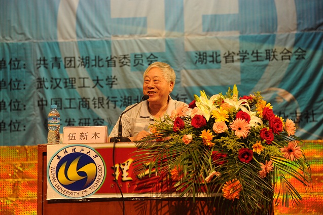 开幕式结束后,武汉大学知名学者、博士生导师,武汉大学区域发展研究院院长、湖北现代企业制度研究会会长伍新木教授为高校学子作了主题为“扩大内需与经济结构调整”的学术报告。